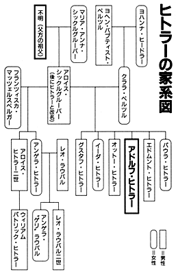 | ヒトラーの家系図は次の通り(「ホロコーストをめぐる戦い 【田中宇】 」より転載)。 |