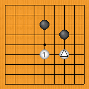 | 相手の石の脱出進路を妨害せずに、むしろ催促する方法。模様を広げる時などに使用する。 |