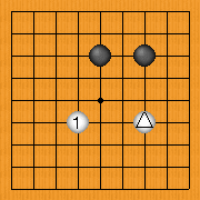 下図の黒の形がアキ三角である。黒○という不急の1手を打った形になっている。