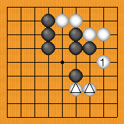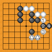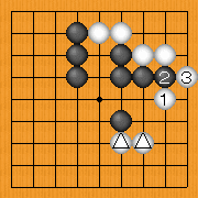 | 割り込んで、相手にアタリにされ、ツナぐ割り込みとツギの二手セットの手のことを言う。 |