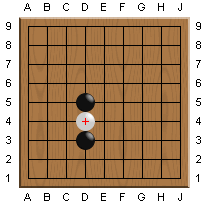 | 相手の勢力圏で大きな模様ができるのを阻止する為に主に三線に打つ手で、両側に二間ビラキができる余裕のある地点へ打つ手のことを言う。 | |