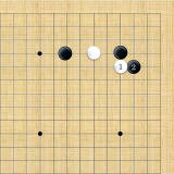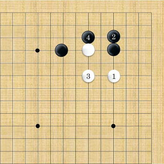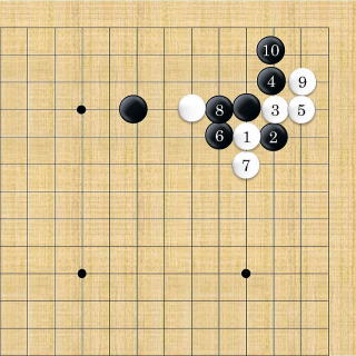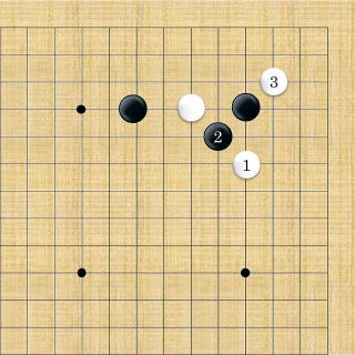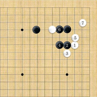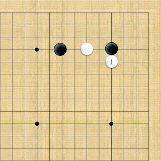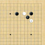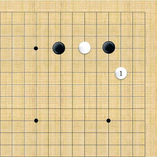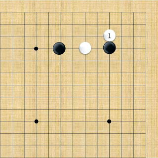 | 1間トビ&ツケ渡り。白が封鎖すれば黒はツケてワタる。この後、白は右辺に展開することになる。 |