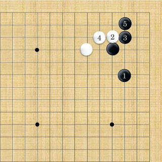 | 三三ツケ後の指了図。最後の黒5のサガリが要点である。 |