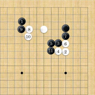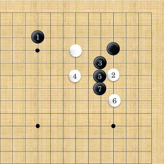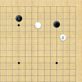 | 小ゲイマ両がかり。小ゲイマに両ガカリするのが最も多い。 |