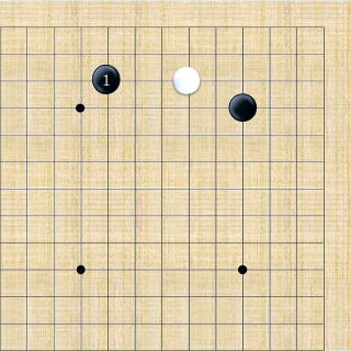 星&小ゲイマ小ゲイマガカリに対し二間バサミの手である。低い二間のハサミは使用度は高くない。一間バサミに比べてゆっくりしているが、白にヒラキの余地を与えない点では厳しい攻めになっている。但し、一間バサミより迫力に欠け、隅から右辺に勢力を蓄えたとき、低い位置のバランスがよくない意味がある。