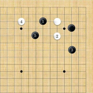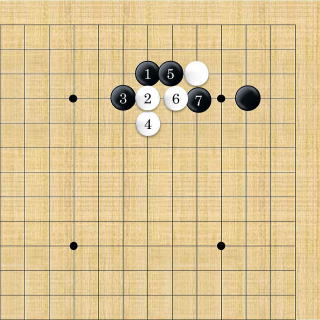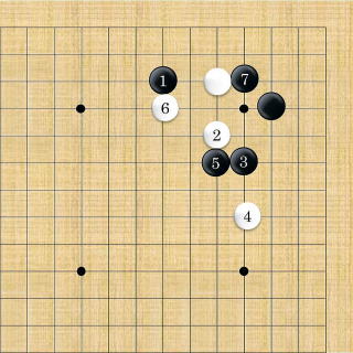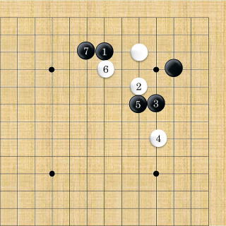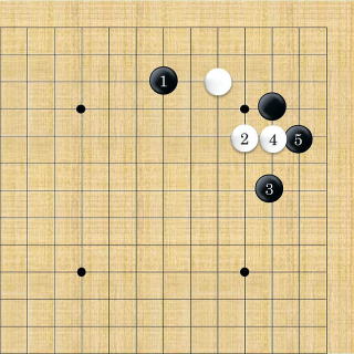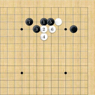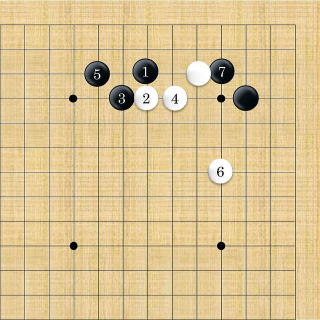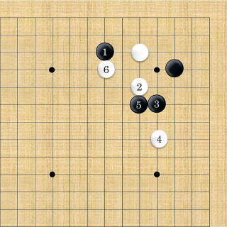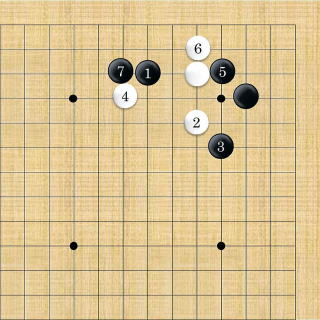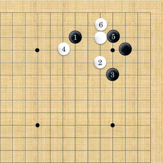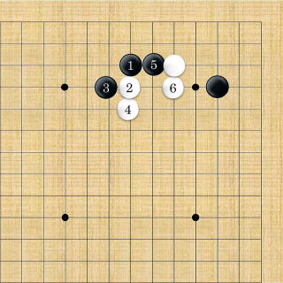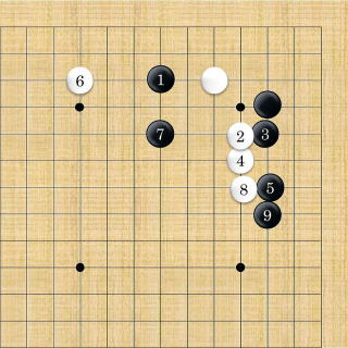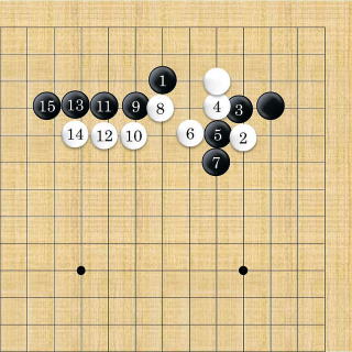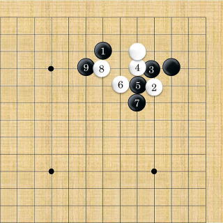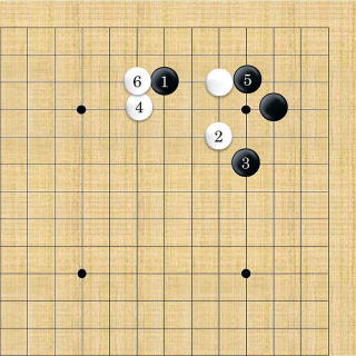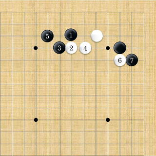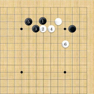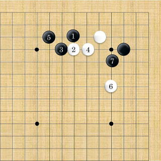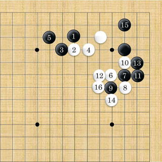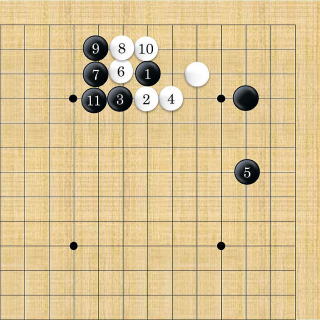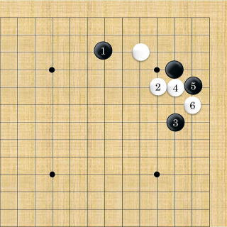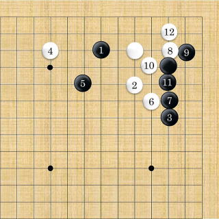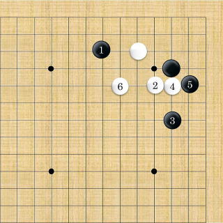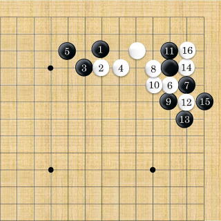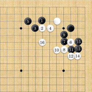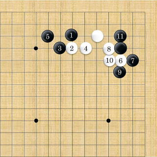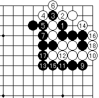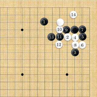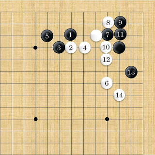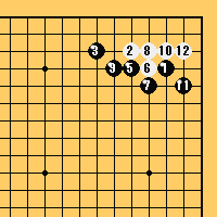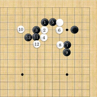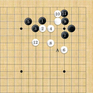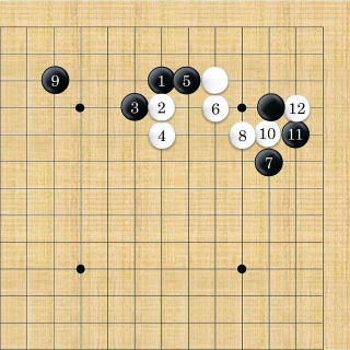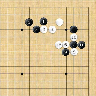 | 指了図。黒5の逃げ出しには白6から12までが常用の筋で治まる。 |