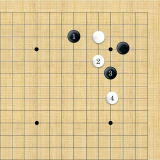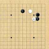 | コスミツケ。黒が隅及び右辺を重視するならば白のツケには応じにコスミツケを利かす。 |