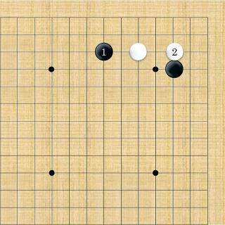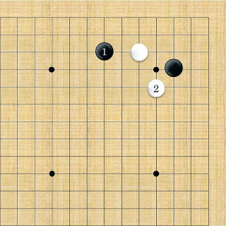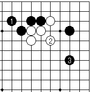 | 抱え。白は2の石を捨石として当たりをかけ黒1を抱えたことになる。 |