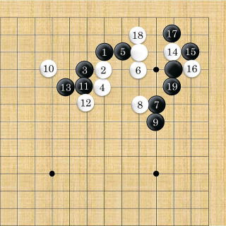 | 白8と受けさせた後、9とトンで白10と備えさせ右辺の白を攻める展開もある。 |
