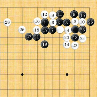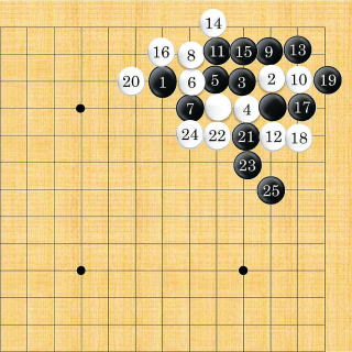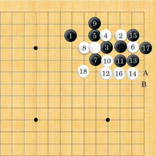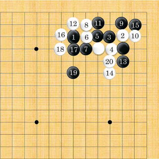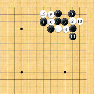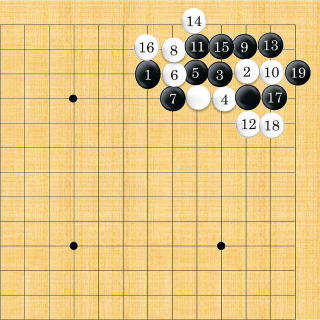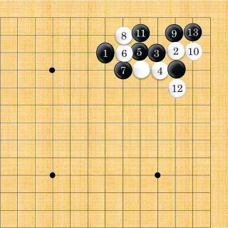| 隅のハイ。黒13とハウのは実利を重視する手。 |