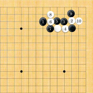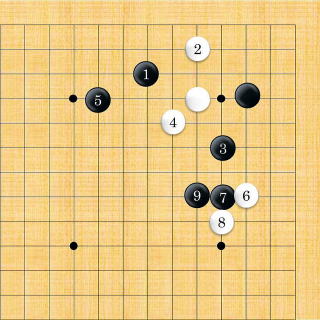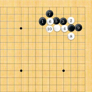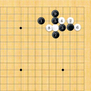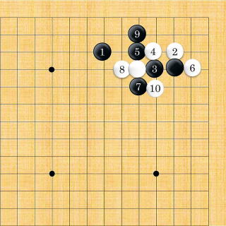 | 下ハネ。黒は9と隅に手を入れるくらいのもの。 |