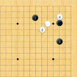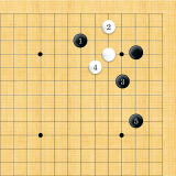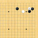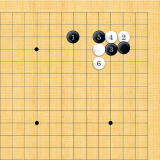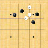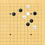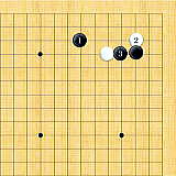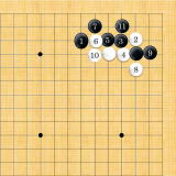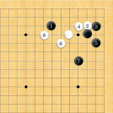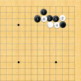 | その後の進行は既出の変化とほぼ同じで、黒3の位が低いのをどう見るかだが、まずは互角と見てもよいだろう。 |