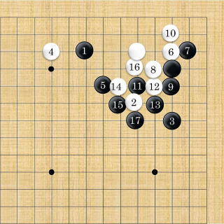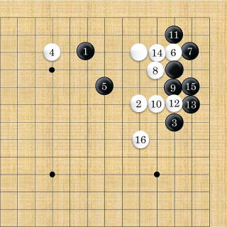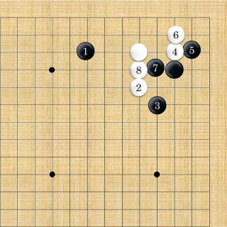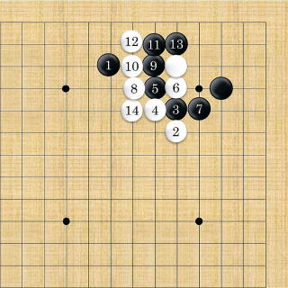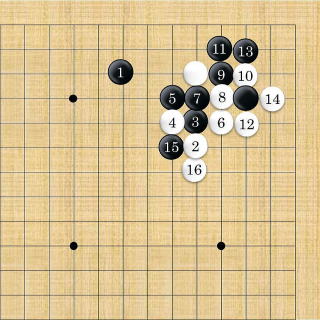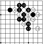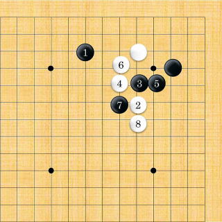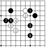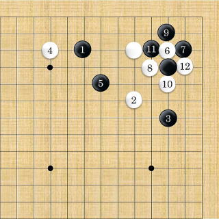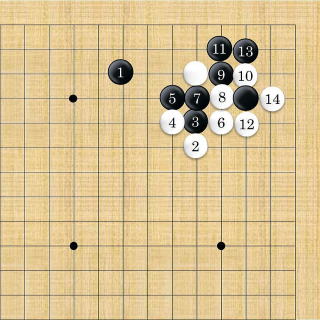 | 白はシチョウが悪い時は2以下隅にフリカワるように打つ。 |