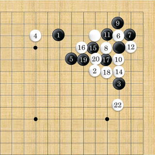 | 白14をツキアタるのは白22まで黒の味が良すぎる。 |