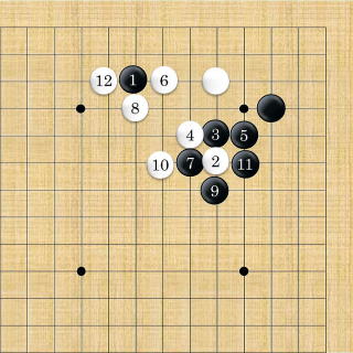 | 黒11のツケコシの手筋により本図のようにマクラレて封鎖され白が悪くなる。 |