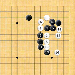 | 白13まで互いに一子を抱えて一段落。 |