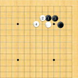 小目&1間高がかりに対する下ツケの形。隅を固める意思を持つ堅実な打ち方である。その後の変化は簡明なツケ引きから難解な大ナダレまである。これを元図とする。 |