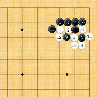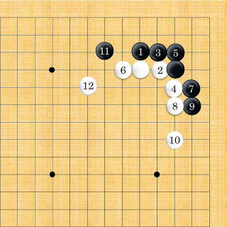 | これも方や隅、方や外勢の分かれとなる。 |