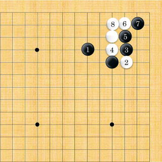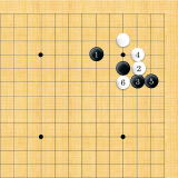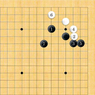 | 指了図。黒も7と備えれば厚い。黒は後手を引くのでは不満と見て右辺にヒラいて白からの切りを迎え撃つ手法もある。 |