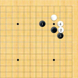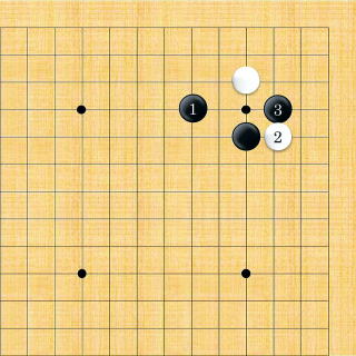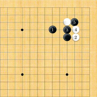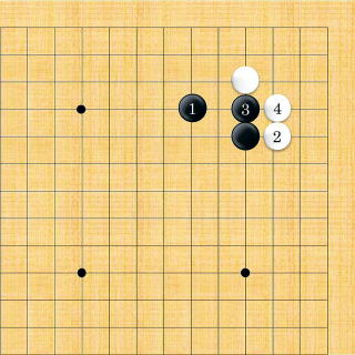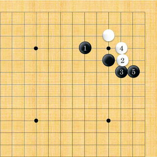 | ハネ。黒は切らずにハネ押えするのも有力な手である。 |