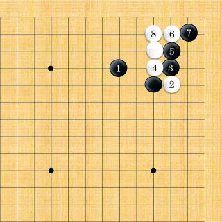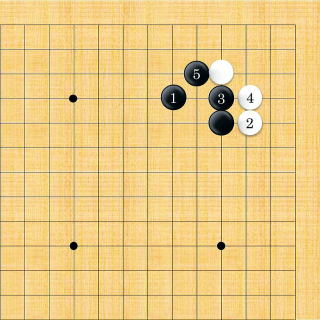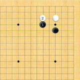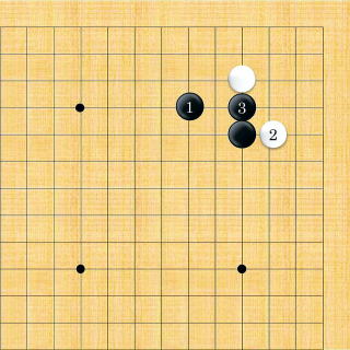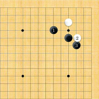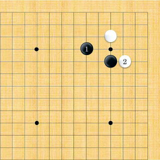 | 指了図。黒が隅を切り取れば白はカカえ、実利と厚みの互角のワカレとなる。 |