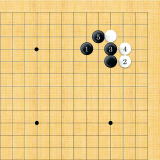 | ブツカリ。白のアテ込ミは黒の形を崩しながら生きる手である。 |