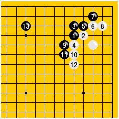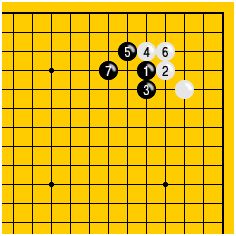 | 白6を手抜きして、黒3本差が理に対しても手抜きの時の黒の攻め方は次の通り。 |