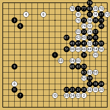 | 「道策―雛屋立甫(5子)」(「囲碁古典棋譜全集」、「本因坊道策の置碁」) | ||