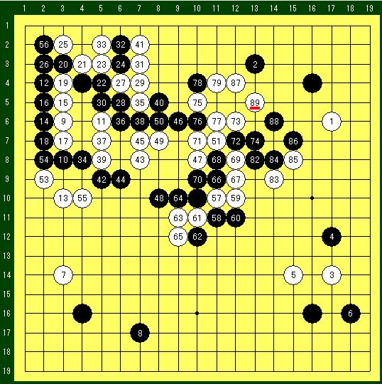 」、白番中押し勝ち。類見ない大技の決まった碁 。