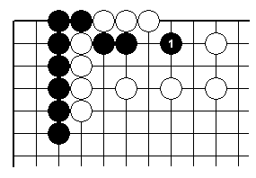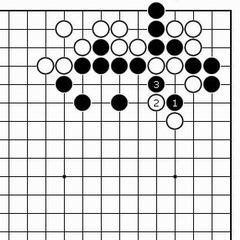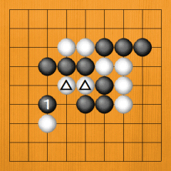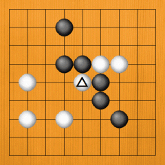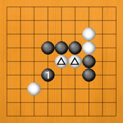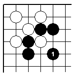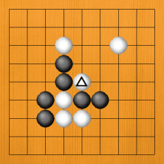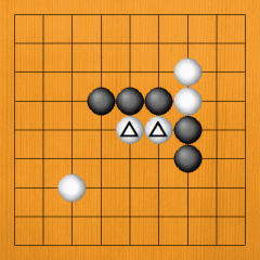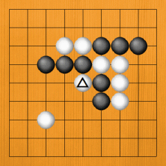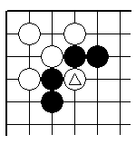 | ゲタとは、シチョウのような直当りではなく、一歩控えて待ち石し、相手が逃げだしたら、出てきた頭を押えて取る手筋を云う。 |
