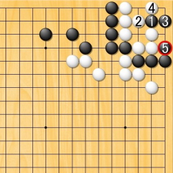 黒の二段バネに、白4なら黒5のツギで黒勝ちになる。
