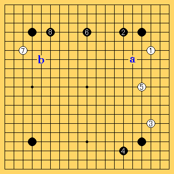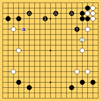 と一間に受ける。これなら後に黒aやbと「馬の顔」に打つことができるし