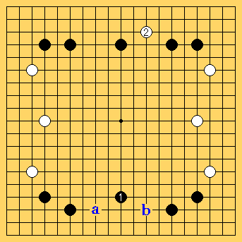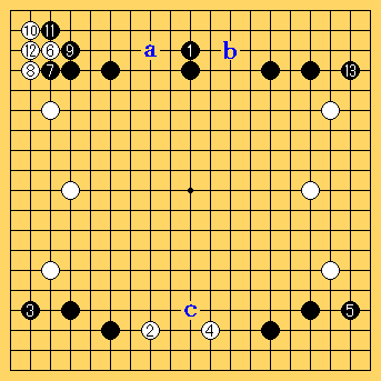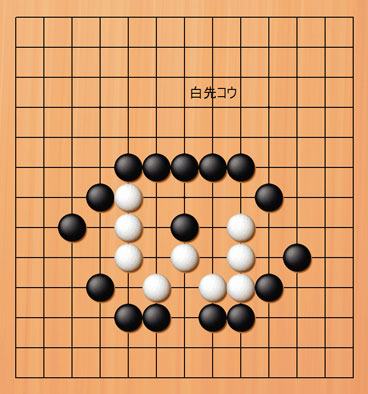 | ここで、「左右同形、中央に手ありの筋1」を確認しておく。 2005.6.4日 2013.5.22日再編集 囲碁吉拝 |