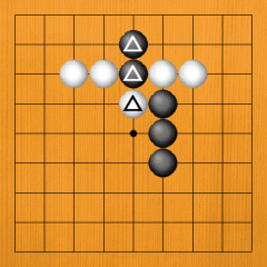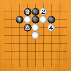 | シチョウとは囲碁の代表本的な手筋のひとつで、アタリの連続で石を取る術を云う。これを「シチョウに取る」と云う。逃げきれないシチョウを逃げると、逃げた分だけさらに被害を大きくし、投了まであり得ることになる。これにより「シチョウ知らずに碁を打つな」という格言がある。シチョウの語源は「四丁」で、四丁は400mで、長い距離を追いかけていくという意味。中国用語では「征」と書く。階段状の追いかけっこのアタリの連続で相手を追いつめていくことをイメージしている。 シチョウには1・直系シチョウ、2・曲折系シチョウ、3・ゆるみシチョウとがある。目で読むのに1は簡単だが2、3は難しい。実戦と経験を重ねて目を肥やす以外にない。2、3を知らぬばかりに取れる石を逃がしたり、逃げられないのに逃げて失敗してしまう。 |