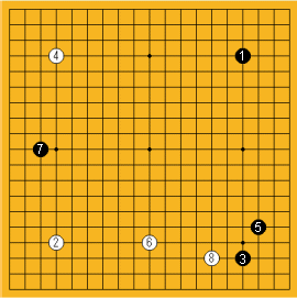 白2/ツメ。黒3/ツケ。白4以下白8まで。
