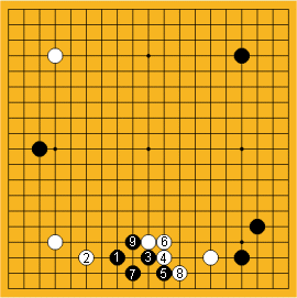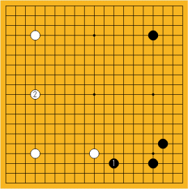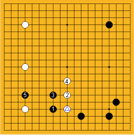 の攻めになる。攻める時は左右の白が連絡しないようにしなければいけない。そうすると