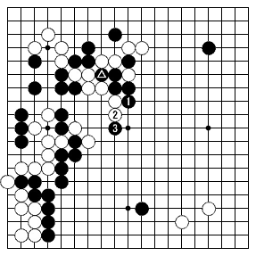 | 「(3)封じ手の鼻ヅケが強手」(読売新聞 2006/05/掲載)。 ◆第27期棋聖戦第4局(白)王立誠棋聖(黒)山下敬吾七段(選/小嶋高穂九段)