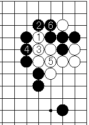 黒1とツグのはきかされで、白2から6とサバかれて失敗。