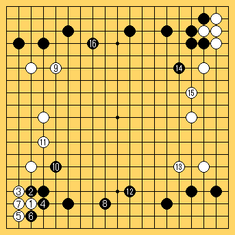 白は とひたすら三々に入り続けるとする。 から と打ち のツギに のシマリ。 |