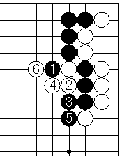 1とアテるのは4と逃げられて取れない。白6まで失敗。