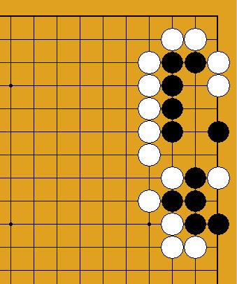 | ここで、「辺の生き詰め碁例題/広げ生きの筋」を確認する。 2014.10.27日 囲碁吉拝 |