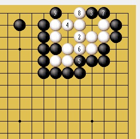 白2、黒3、城4、黒5、白6、黒7、しろ、黒9.