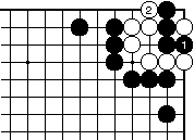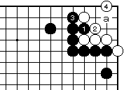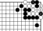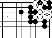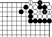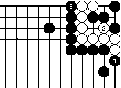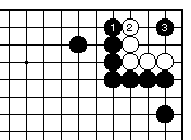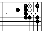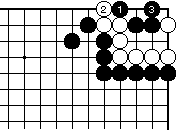 外ダメのある場合、黒1白2として 一合マスの形となり、黒3と置いて、 以下次図。 |