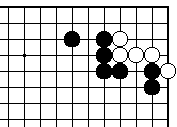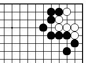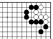 練習問題(22) 練習問題(21)に外ダメが1つ空きま した。黒先でどうなりますか? (解答は232、233頁) |