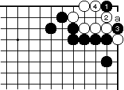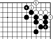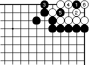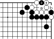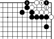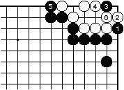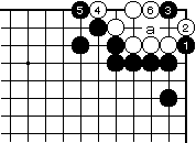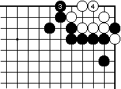 | 【隅の7目片方カケツギ&3の方にハネあり基本形元図】 (下がりなし&外ダメ空きなし) |