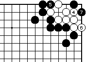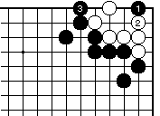 | 【隅の詰め碁縦角形8目/3「逆ハネ」&外ダメ無関係形】 | ||||
