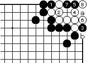 | aとbを境界として白地6目。但し、黒◆に白が手を抜けば白死。 | |