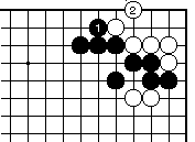 | 【隅の詰め碁縦角形8目/2「片ハネ」&外ダメ無関係形】 | ||||