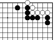 | 【隅の8目(2-4)串形変化形の1、「二側にハネあり」&外ダメ空きなし形】 | ||||