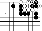 | 白2/黒3/。ヨセコウにする。白4。黒5。白6として万年コウ。 | |